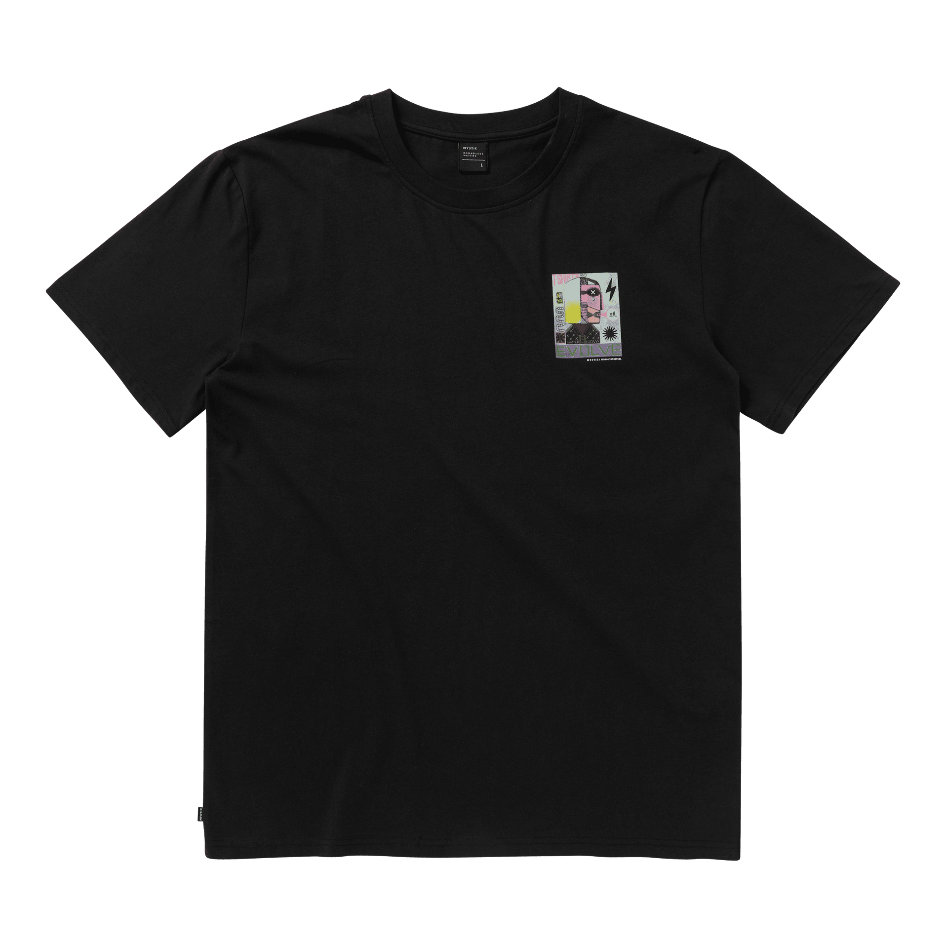 Mystic x Joshua print at wearers's left chest