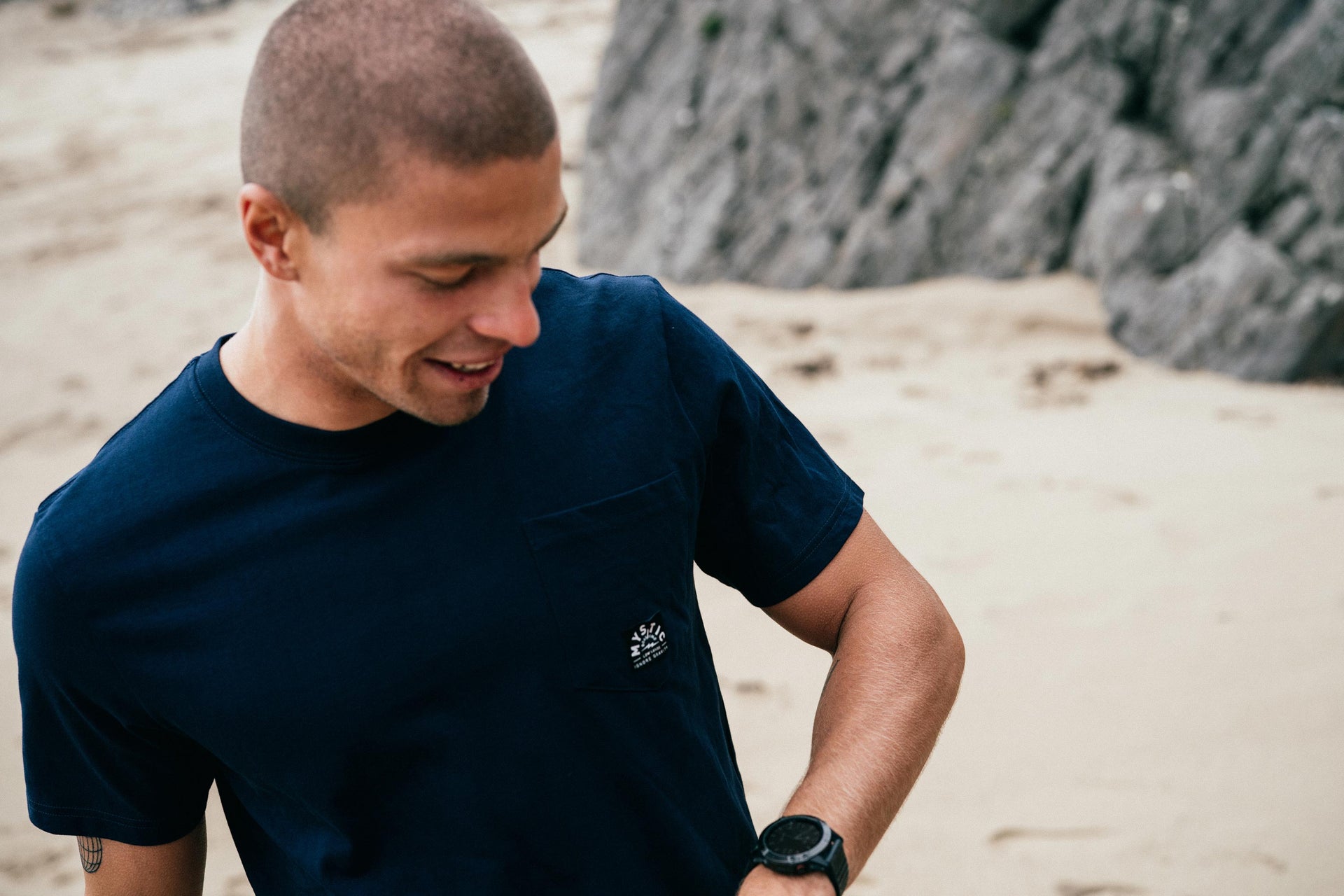 Mystic boarding label at chest pocket